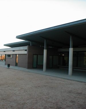 Centro público de educación infantil y primaria de perfil 1I+3P Miguel Servet en Alborache, Valencia, España.