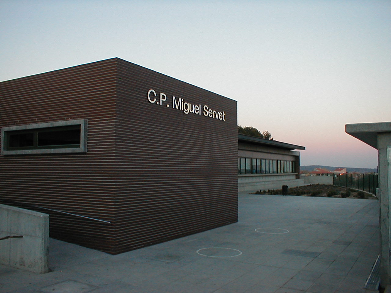 Centro público de educación infantil y primaria de perfil 1I+3P Miguel Servet en Alborache, Valencia, España.